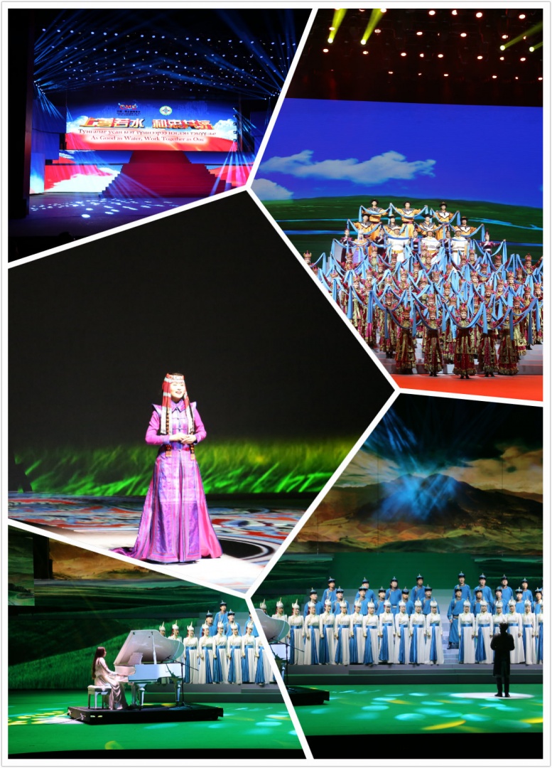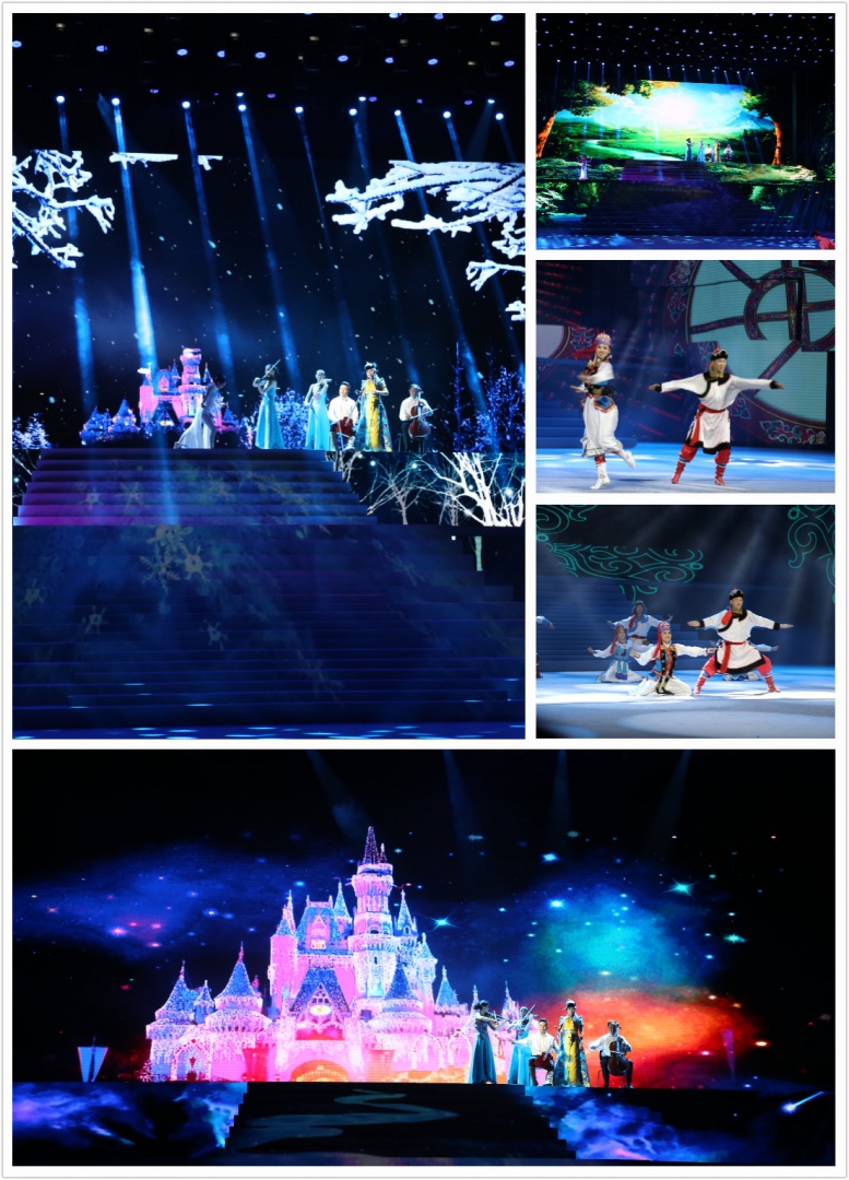 中蒙博覽會開幕式晚會在烏蘭恰特大劇院演出。晚會以“上善若水·和衷共濟”為主題,節目內容融合蒙古族長調、呼麥等民歌民樂及芭蕾舞、俄羅斯舞、柔術、服裝服飾展示、京劇、交響樂等藝術形式,為兩國觀眾奉獻一臺熱烈、友好的高水準文化盛宴。本次演出采用了我公司的巴可4萬流明投影機6臺實現了非常壯觀的視覺盛宴。