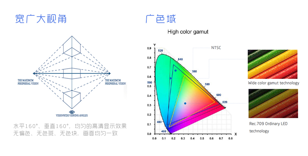 水平/垂直160°的超寬視角,各個角度盡享清晰逼真的畫質(zhì)。